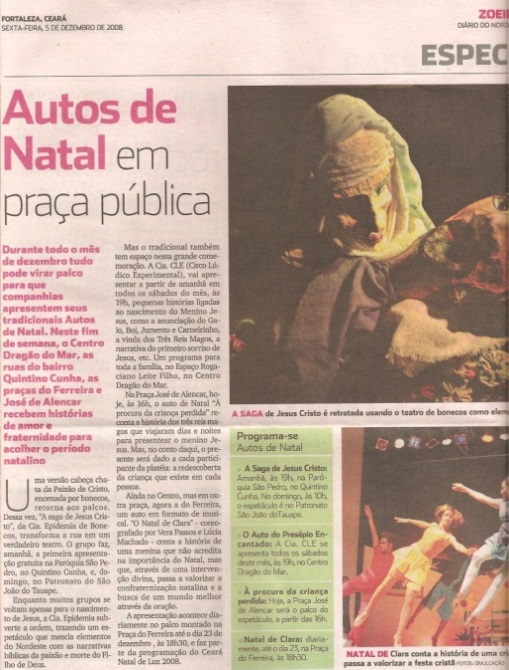 XI Mostra Estadual Ceará Natal de Luz, com a peça O Auto do Boi Boca Rica – praça do Ferreira, Fortaleza.