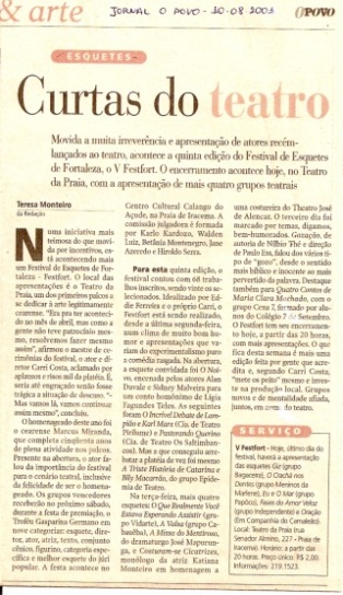 2010 Festival do Teatro Brasileiro - Cena Cearense, com “A Triste Estória de Catarina e Bily Macarrão” , em Belo Horizonte - Minas Gerais - e Vitória – Espírito Santo.