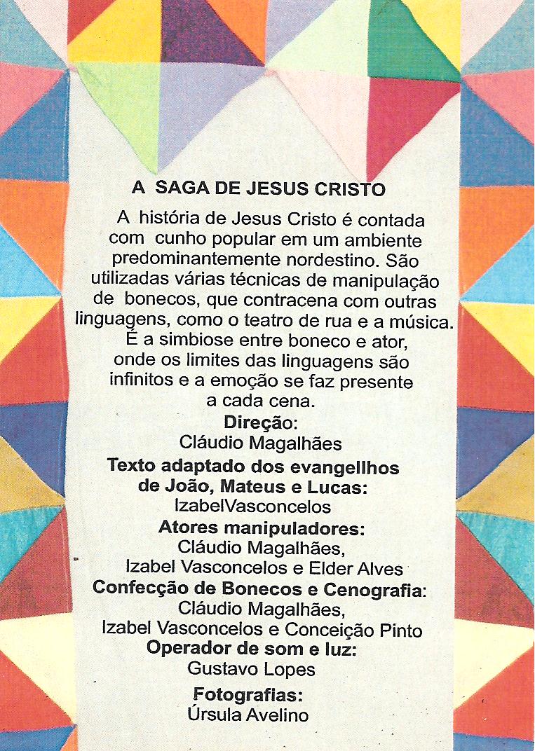2007 “A Saga de Jesus Cristo” – direção de Cláudio Magalhães, com a Cia Epidemia de Bonecos