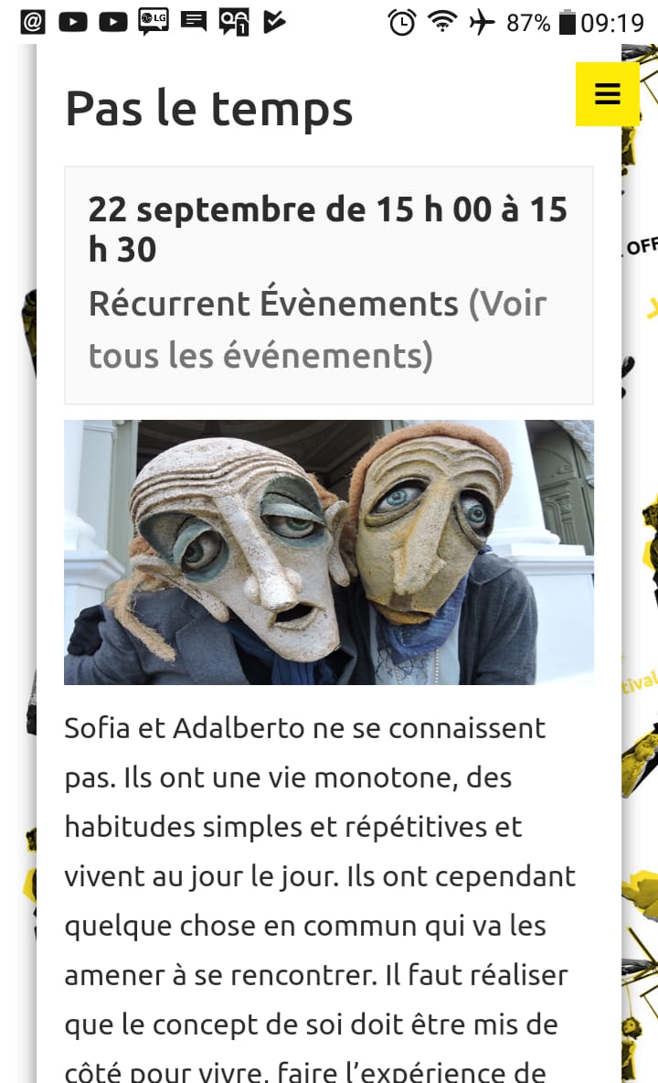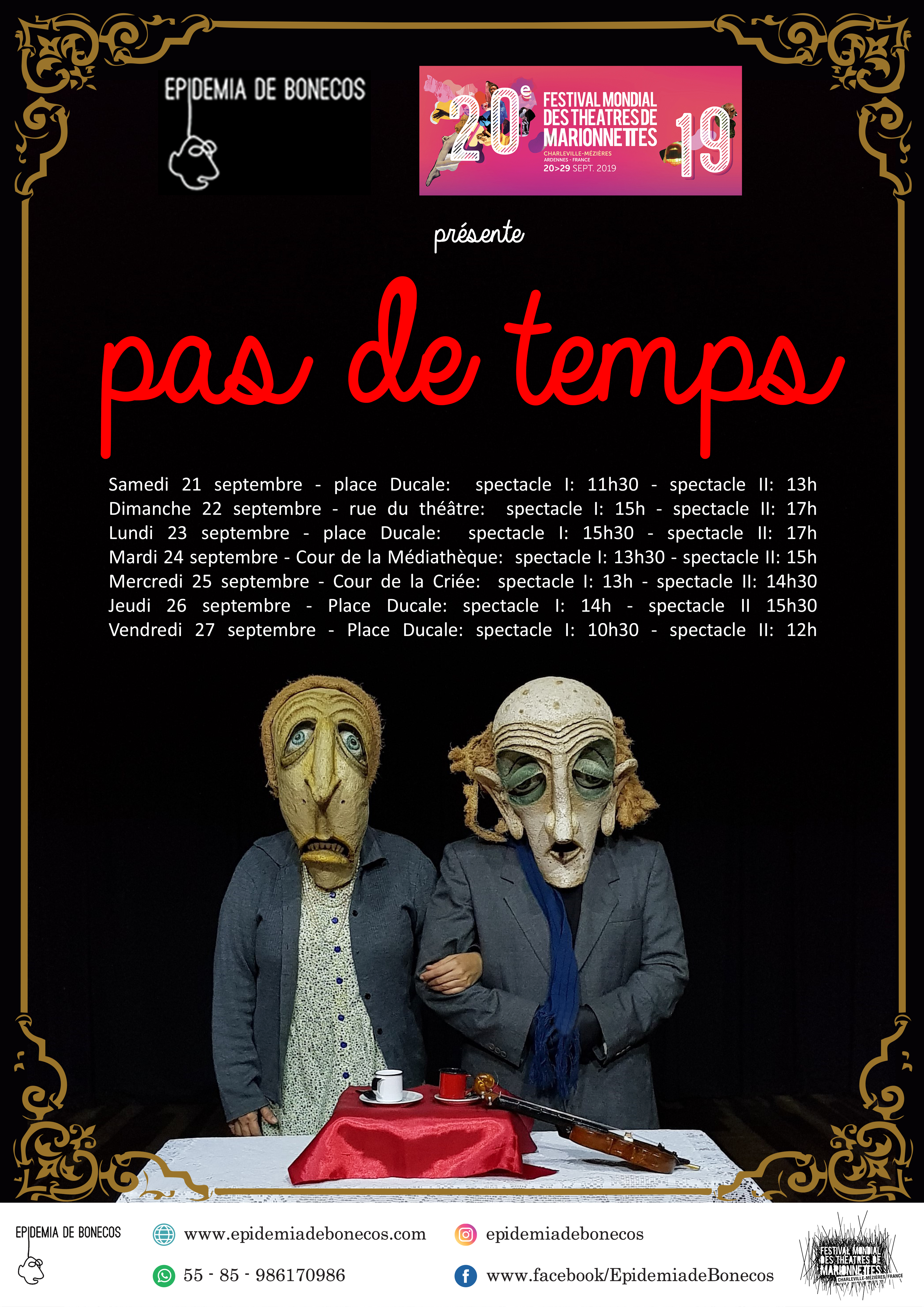 2019 Festival Mondial des Theatres de Marionnettes, com a peça “Pas de Temps” - Charleville- Mèziére, França.