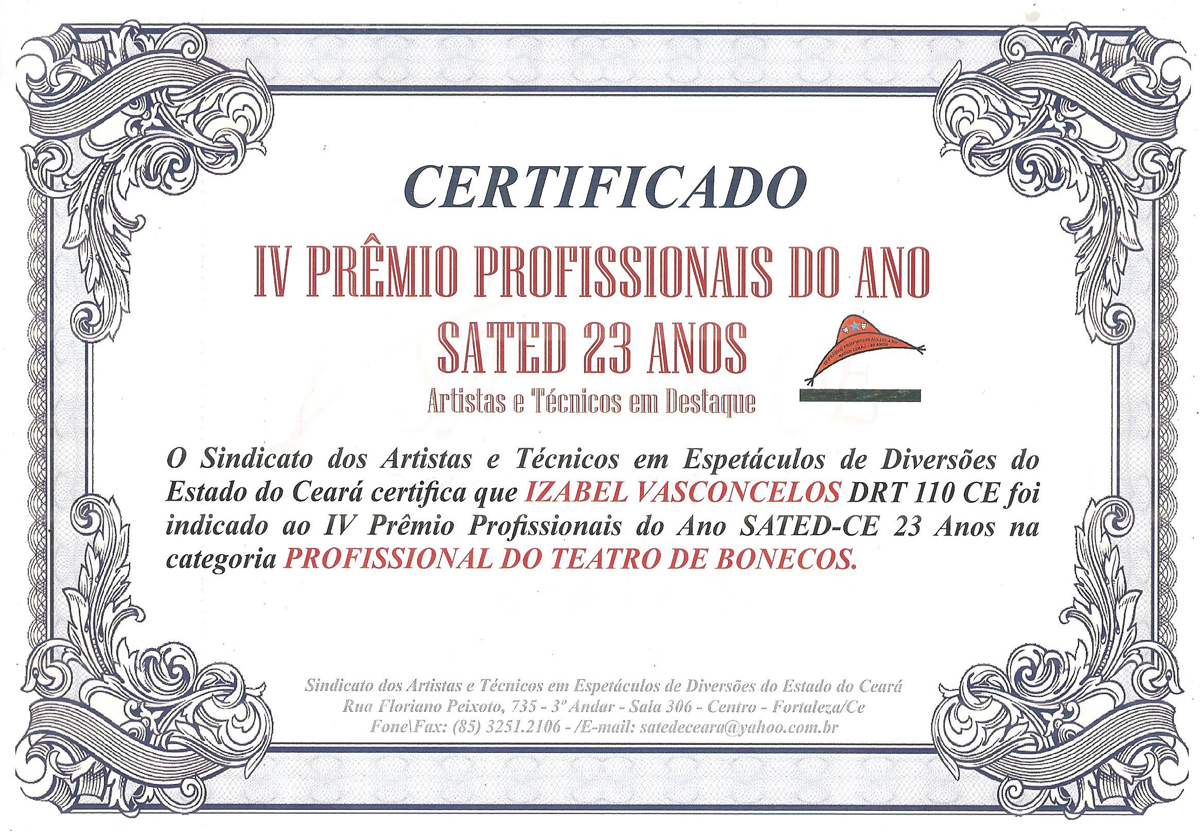 2010 Graduada em Artes Cênicas - Instituto Federal de Educação, Ciência e Tecnológico do Ceará – IFCE